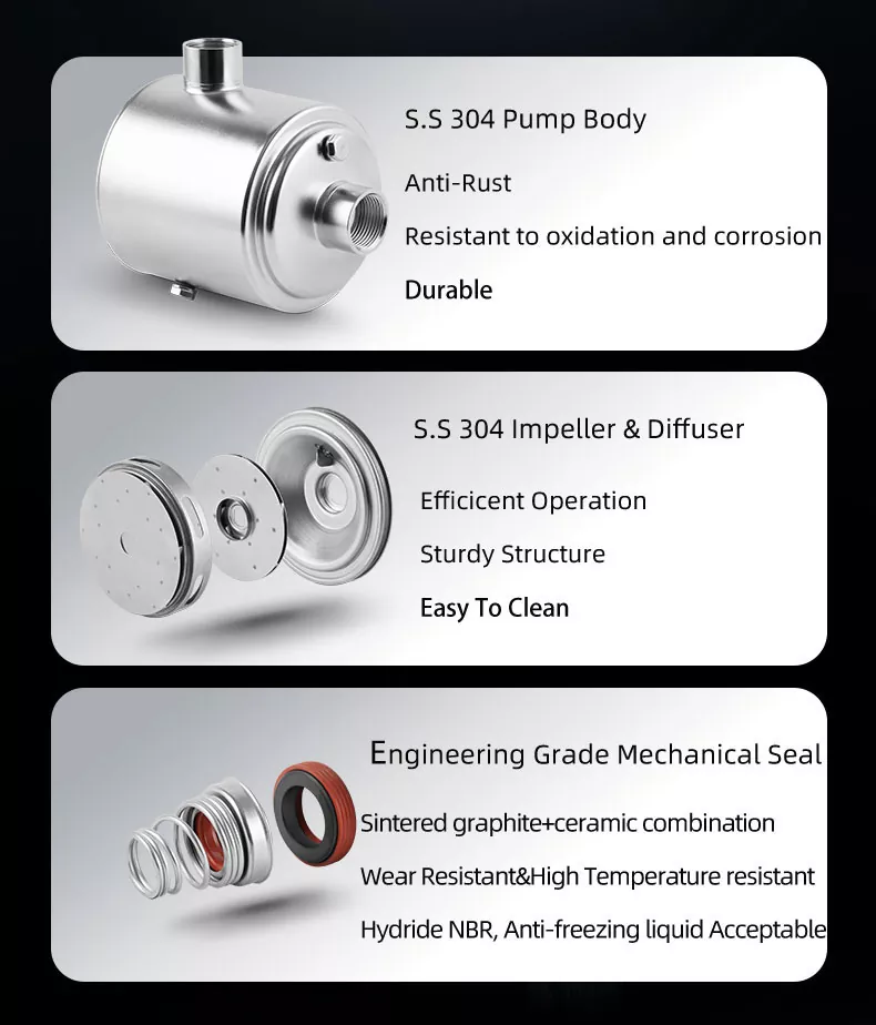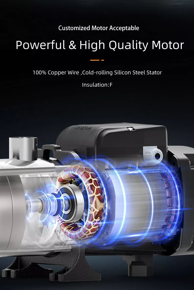1. A többlépcsős centrifugális szivattyú egy függőleges szerkezet, kis lábnyomú. A szivattyú súlypontja egybeesik a szivattyú lábának középpontjával, így simán fut, kevés rezgéssel rendelkezik, és hosszú élettartamú.