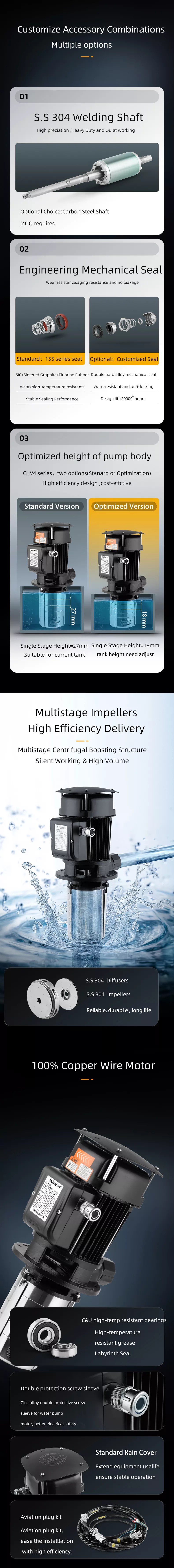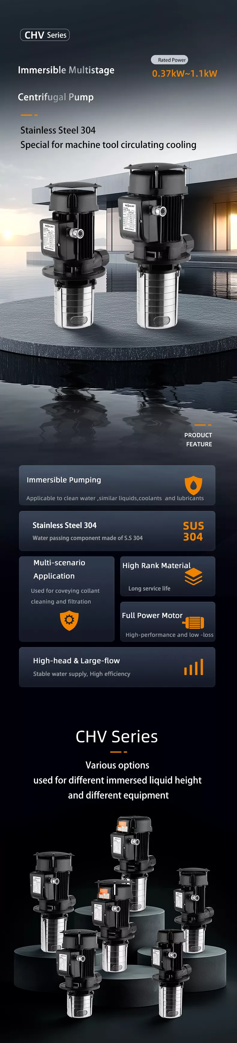 Az alábbiakban bemutatjuk a CHV sorozatot. A CHV merülő többfokozatú centrifugálszivattyút, amelyet kifejezetten szerszámgépek hűtő-kenőanyagainak szivattyúzására terveztek, és a tartályok tetejére kell felszerelni úgy, hogy a szivattyúköteg belemerül a szivattyúzott folyadékba. A STAIRS SBK szivattyúk különböző méretű szivattyúkkal és különböző számú fokozattal állnak rendelkezésre az áramlás, a nyomás és a kívánt hosszúság biztosításához.