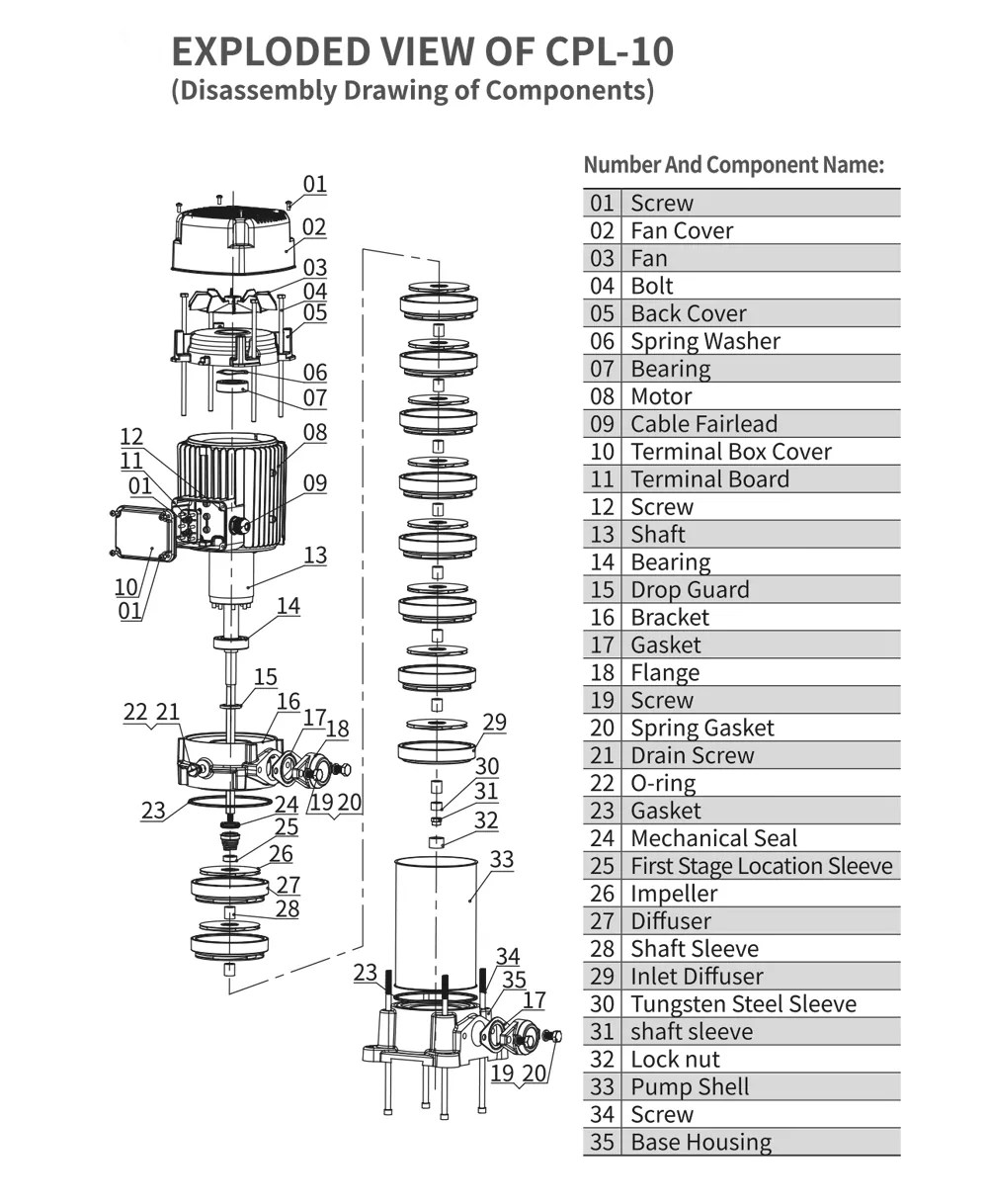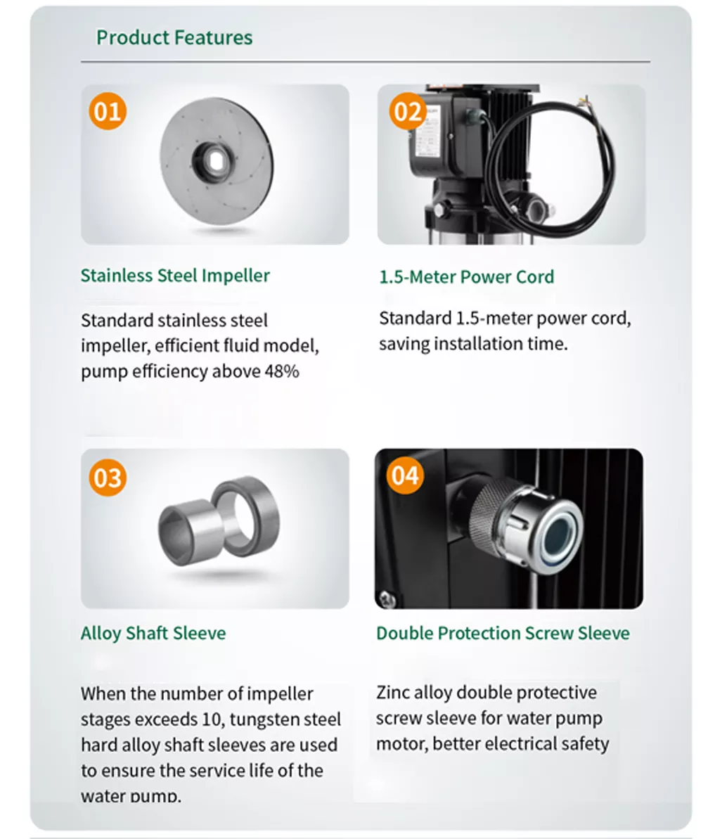 A szivattyú feje a járókerekek számának változtatásával állítható, hogy megfeleljen a különféle követelményeknek. Tiszta vízhez vagy hasonló tulajdonságú folyadékokhoz alkalmas, míg bizonyos modellek korrozív közegekhez is testreszabhatók.